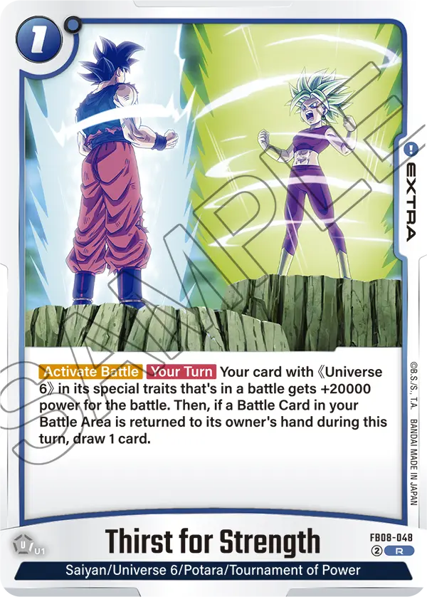 [Activate Battle] [Your Turn] Your card with "Universe 6" in its special traits that's in a battle gets +20000 power for the battle. Then, if a Battle Card in your Battle Area is returned to its owner's hand during this turn, draw 1 card.