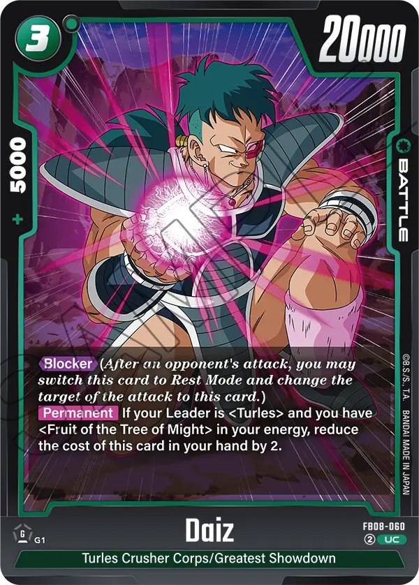 [Permanent] If your Leader is "Turles" and you have "Fruit of the Tree of Might" in your energy, reduce the cost of this card in your hand by 2.
